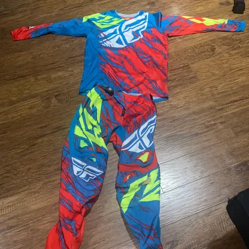 Jersey size large pants size 32. Used but in fair shape . There is a burn mark on the left knee and a tear on the calf area . Asking $50 obo thanks !