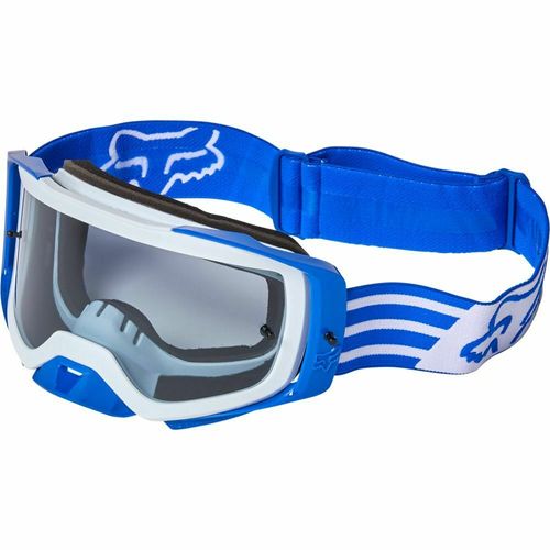 FOX AIRSPACE CIFER GOGGLE PC - BLUE/CLEAR LENS P/N: 28372-002-OS The Airspace Cifer PC Goggles borrow features from our pro-level Vue Goggles, resulting in improved ventilation, peripheral vision, and comfort. It has a larger viewport and improved frame angles to give you a wider field of view. SPECS: Best-in-class viewport for unparalleled peripheral vision via enlarged outer frame and improved frame angle Injected PC lens is designed to provide optical clarity and protect against roost impact Variable Lens System™ (VLS) design allows transfer of standard and injection molded lens' in the same frame Outrigger design creates a secure fit to keep dust and debris out of the viewport Triple-layer face foam with fleece liner provides superior sweat absorption Offers UVA and UVB protection 6-Pin Lens Retention System keeps lens securely attached to the frame 45 mm non-slip silicone strap improves grip on helmet 3-Post tear-off system ready Microfiber goggle bag included