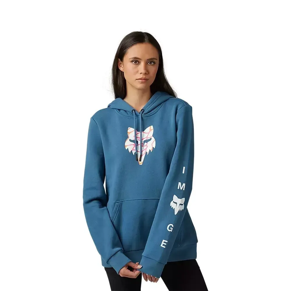 SOFT MIDWEIGHT HOODIE, PERFECT FOR COLD WEATHER With its fresh take on the Fox Head logo, the Women's Ryvr Pullover Hoodie will enhance your IMAGE and make an iconic addition to your wardrobe. Perfect for bringing the heat when temperatures drop, this soft and warm pullover is a premium lighter-weight hoodie you can slip on for instant relief from the chill. With its hoodie style, front kanga pocket, and classic Fox vibe, this is sure to become a wear-everywhere favorite. Women's Sizing Features: Soft brushed fleece interior for comfort and warmth Full-length front zipper Hood with drawcord for adjustment Silicone coated eyelets and aglets Kangaroo pocket for hand warmth Zipper with logo metal pull Screen print artwork Length (HPS): 26", size small Materials & Care: 80% cotton, 20% polyester fleece, 280 g Hand wash cold Line dry in shade Do not wring or twist Do not bleach Do not iron 30768-207-L 30768-207-XL